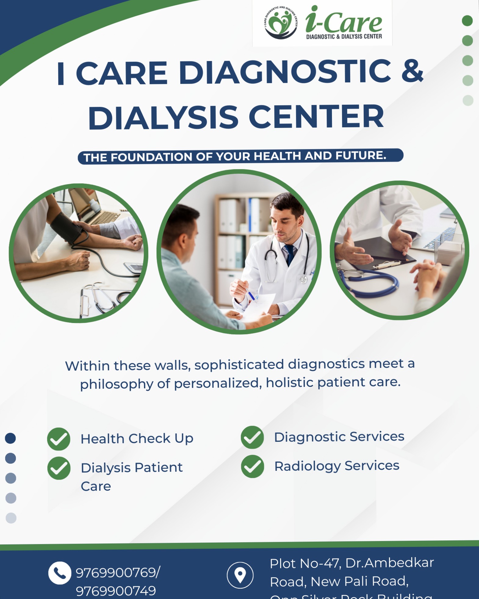 "🏥 I Care Diagnostic & Dialysis Center – Your health, our priority! 💙 Health Check Ups, Dialysis C