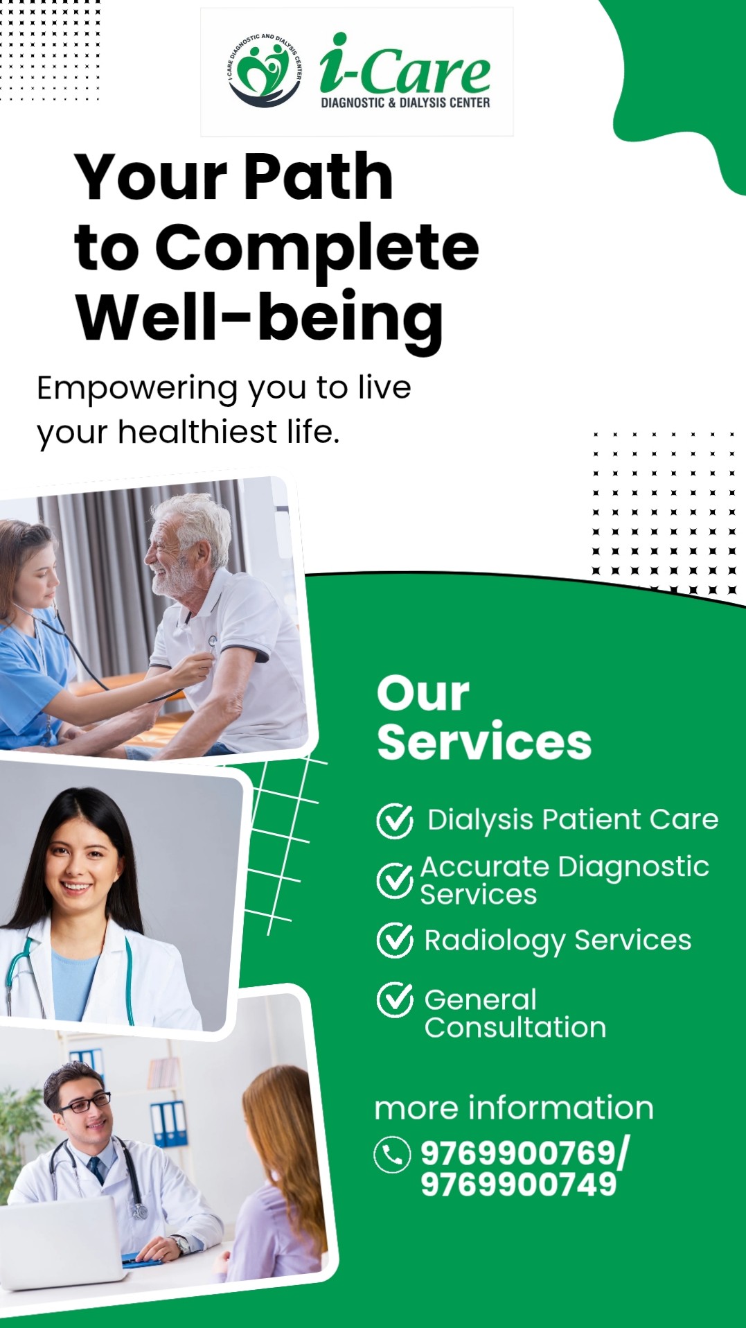 "🏥 i-Care Diagnostic & Dialysis Center – _Your health, your choice💙 Advanced diagnostics, spec