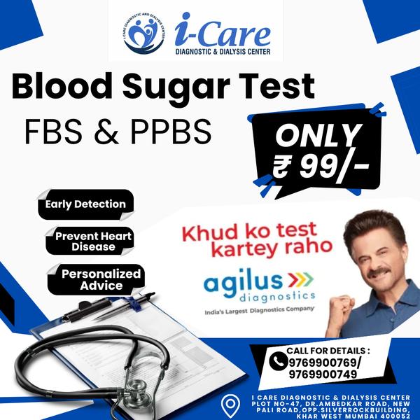 Sugar Blood Test Rs 99 only at I Care Diagnostic & Dialysis Center Khar west