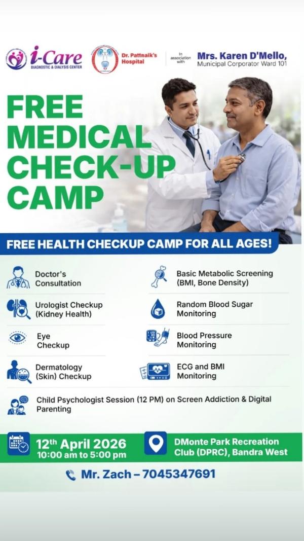 Your Health, Our Priority! Join the FREE MEDICAL CHECK-UP CAMP for ALL AGES at DMonte Park Recreatio